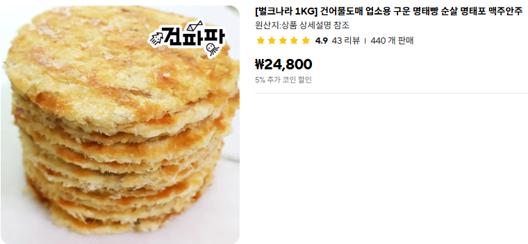 구운 명태빵 순살 명태포 맥주안주 최저가 소개합니다.