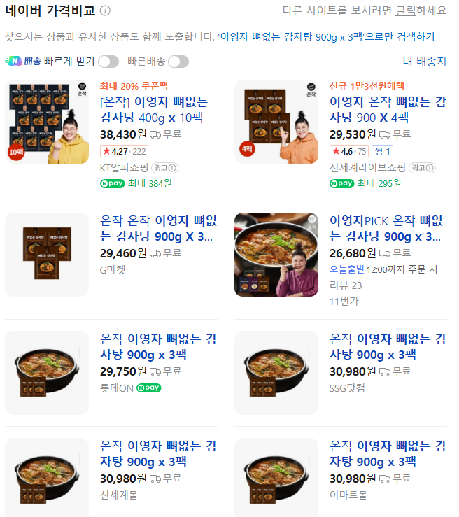| 이영자 갈비탕 뼈없는 갈비탕 900g x 5팩_알리 최저가 (0) | 2026.03.31 |